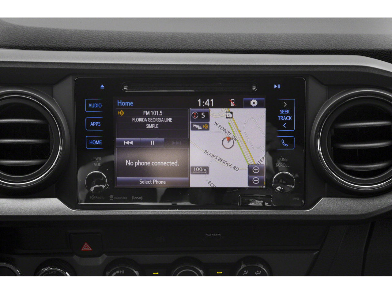 - Radio: Entune Premium w/AM/FM/CD/Nav/App Suite -inc: 6 speakers, 7" high-resolution touch-screen display w/split screen, auxiliary port, USB media port, Siri eyes free, advanced voice recognition, Bluetooth hands-free phone capability, phone book access and music streaming, cache radio, HD Radio, HD predictive traffic and doppler weather overlay and SiriusXM satellite radio w/complimentary SiriusXM All Access 90-day trial subscription included